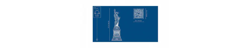 Ten 93-metrowy, kultowy symbol niepodległości Ameryki stoi na wyspie Liberty Island, witając w nowojorskim porcie żeglarzy z całego świata. Imponujący model z klocków LEGO wiernie przedstawia harmonijne połączenie rzeźby i architektury, jakim jest ta budowla. Na misternie odwzorowanym cokole można dostrzec dekoracyjne tarcze, ceglaną fakturę oraz kolumnady na balkonach. Kunsztownie wykonanemu posągowi Wolności nie brakuje żadnego z detali: powłóczystej szaty, zerwanych łańcuchów, siedmioramiennej korony, charakterystycznej tablicy ani złotej pochodni w uniesionej ręce. Model zbudowany jest z piaskowozielonych i beżowych klocków odzwierciedlających autentyczną kolorystykę budowli i zawiera dekoracyjną płytkę z nazwą. Świetnie sprawdzi się jako symboliczny element wystroju domu lub biura, a złożenie go to fascynujące wyzwanie, które zapewni dużo satysfakcji każdemu miłośnikowi architektury, podróży, historii i projektowania.