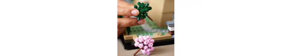 Ten model przedstawia przede wszystkim górny poziom ogromnych ogrodów zamkowych i zawiera cztery drzewa wiśniowe do zbudowania — dwa z zielonymi liśćmi i dwa z różowymi kwiatami, aby pokazać ogrody w pełnym wiosennym rozkwicie. W pudełku i w aplikacji LEGO Builder znajdziesz szczegółowe instrukcje, które poprowadzą Cię przez wciągającą, twórczą zabawę.