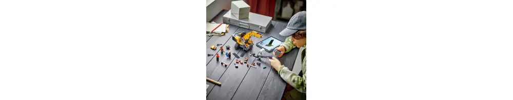 • Do zestawu LEGO® z koparką dołączono instrukcje 3D w aplikacji LEGO Builder
