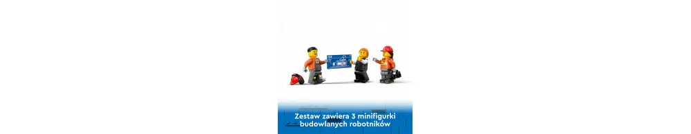• Zawiera zabawkową koparkę, dwie barierki i trzy minifigurki LEGO® pracowników budowy