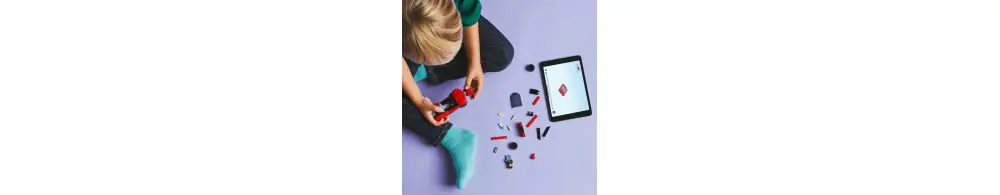 Ten łatwy do zbudowania zestaw LEGO z samochodem sportowym zawiera drukowane instrukcje budowania oraz instrukcje 3D w aplikacji LEGO Builder — cyfrowym narzędziu do powiększania i obracania, które pomaga dzieciom wizualizować modele z różnych perspektyw.