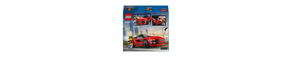 Podaruj pięcioletniemu lub starszemu miłośnikowi motoryzacji zestaw LEGO® City Czerwony samochód sportowy (60448). Ten elegancki supersamochód ma fajne felgi, opony niskoprofilowe i przyciemnianą kabinę. Dzieci mogą posadzić minifigurkę kierowcy za kierownicą, schować telefon komórkowy i akcesoria do mycia auta w bagażniku, a potem ruszyć na autostradę, by przeżyć superszybkie przygody!