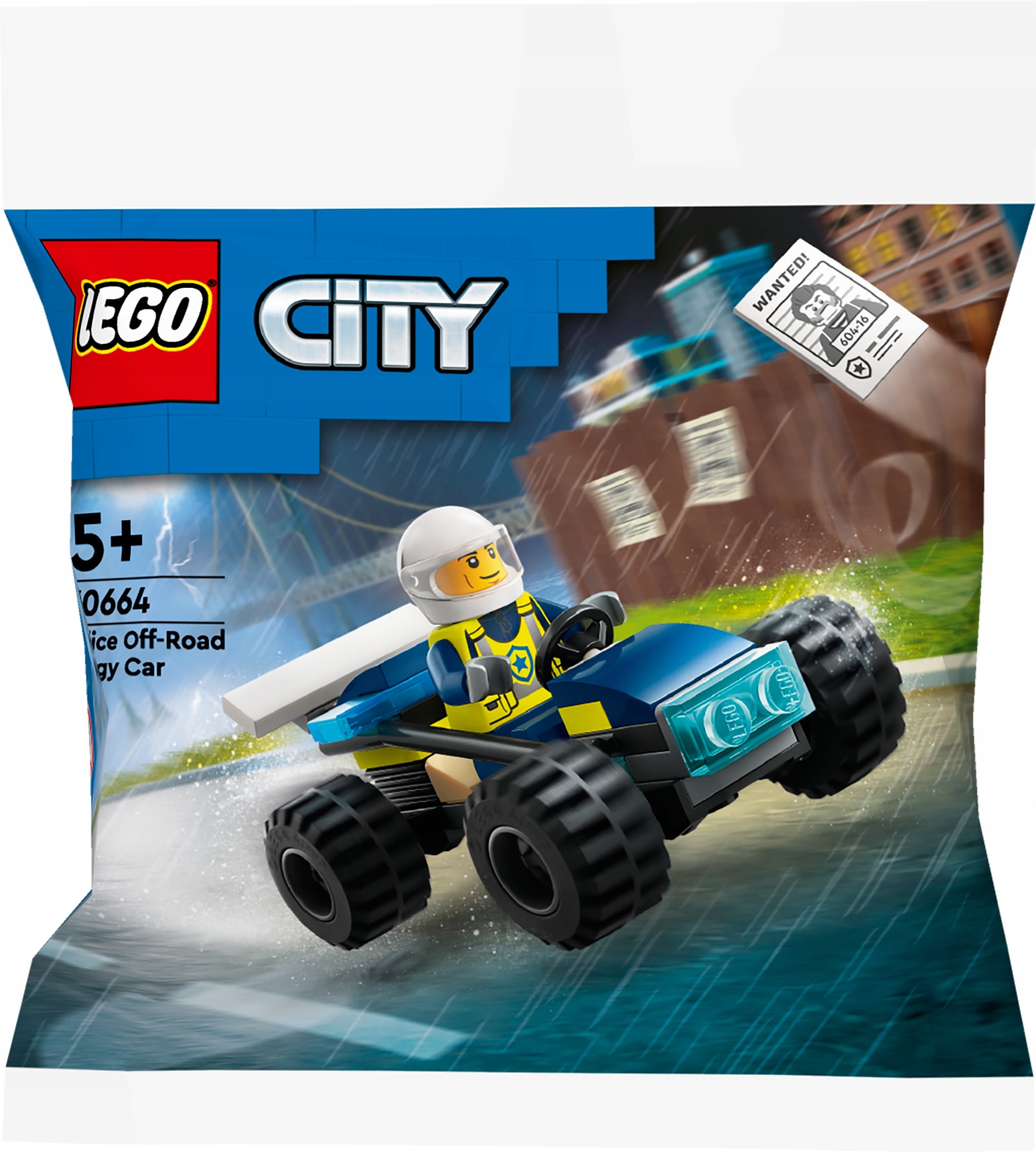 Zestaw LEGO® City Policyjny łazik terenowy LEGO® City zawiera minifigurkę policjanta, plakat z poszukiwanym złodziejaszkiem i kod QR przekierowujący do zabawnego filmiku online.