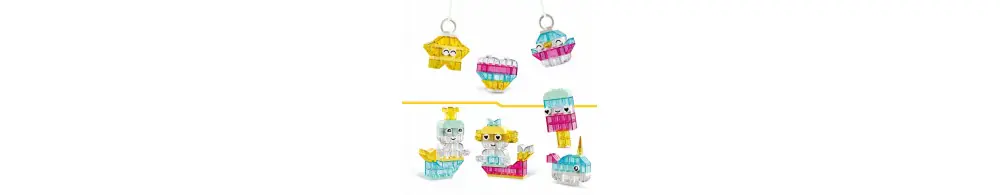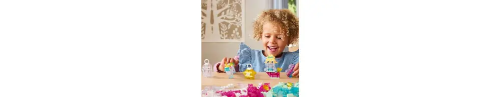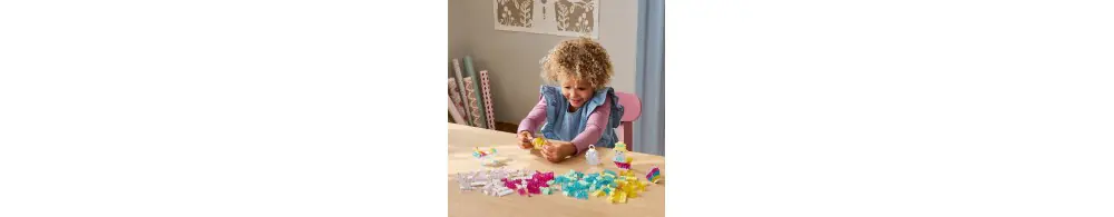 Dzieci zaczną od budowania zabawek w kształcie serca, ducha, syrenki, gwiazdy i jednorożca. Gdy nabiorą już pewności siebie w budowaniu, mogą przejść do statku kosmicznego, chmury, spadającej gwiazdy, ptaka, narwala, lodów i kwiatka. Następnie mogą zwiększyć skalę kreatywnej zabawy, budując duży zamek i smoka. Przezroczyste klocki, elementy z oczami i buziami oraz klocki z wieszakami do ekspozycji dodają blasku i dodatkowej kreatywnej zabawy do dziecięcych dzieł.