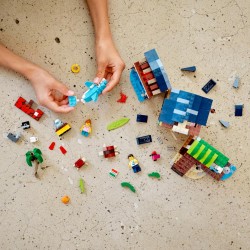 Przenieś się w przeszłość i przeżyj niezapomniane chwile na średniowiecznym zamku. Strażnik na jednej z wież wypatrzył ziejącego ogniem smoka! Zamknij bramę, by nie dostał się do środka. Obróć młyn wodny, by napędzić kuźnię i wykuć miecze. Później możesz przebudować zamek na basztę z katapultą lub targ z więzieniem. W zestawach Creator 3 w 1 wybór należy do Ciebie!