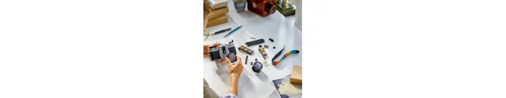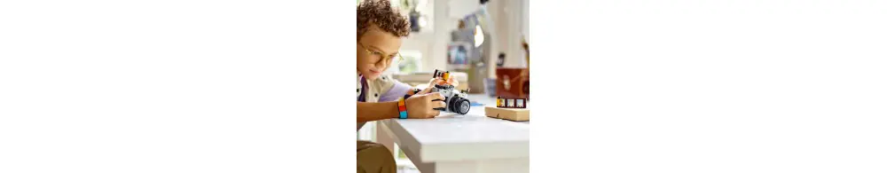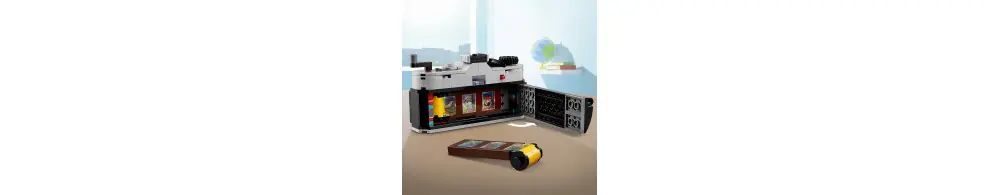 Zainspiruj dzieci w wieku od ośmiu lat i podaruj im zestaw 3 w 1 LEGO® Creator Aparat w stylu retro (31147). Ten kultowy aparat ma ruchomy obiektyw, przyciski migawki na górze i otwierany tył z miejscem na kliszę zbudowaną z klocków. Całości dopełnia kolorowy, materiałowy pasek, na którym można przenosić aparat. W zestawie jest także sześć naklejek imitujących zdjęcia, którymi można ozdobić kliszę.