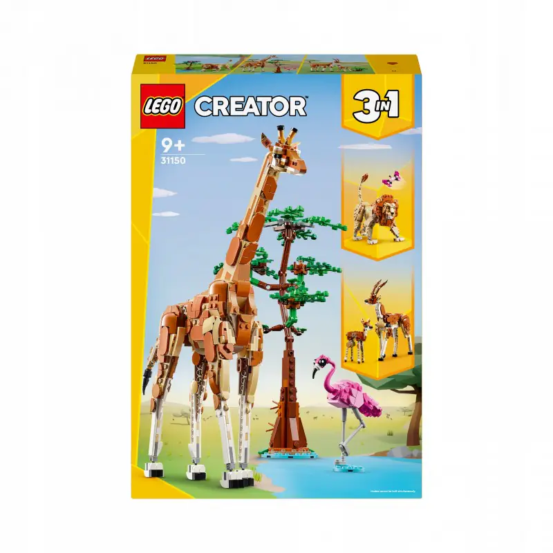 Ten zestaw LEGO oferuje dzieciom mnóstwo możliwości zabawy trzema modelami, które można zbudować z tego samego zestawu klocków. Dzieci mogą stworzyć ruchomą żyrafę z drzewem i flamingiem, a następnie zmienić ją w dwie ruchome gazele, mamę i jej młode, oraz dwa krzaki, albo w lwa z drzewem i motylem.