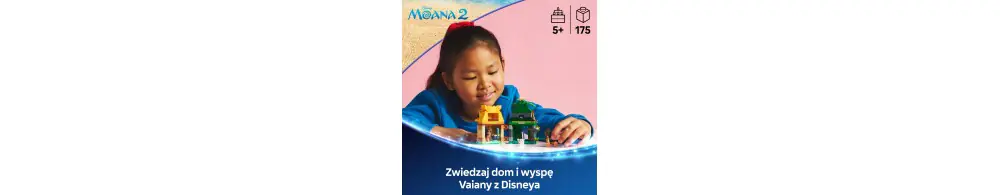 Na pięcioletnich i starszych fanów Vaiany Disneya czekają wspaniałe przygody podczas zabawy zestawem LEGO® ǀ Disney Zabawy Vaiany na wyspie (43260). Dwustronny model w mikroskali inspirowany filmem Disneya Vaiana 2 to mały zestaw oferujący ogromne możliwości. Na wyspie jest zjeżdżalnia z wodospadem i sekretnym wejściem, a w domku są pokoje, które zamieszkują mikrolaleczki LEGO | Disney Vaiany i jej siostry Simei, a także Pua. Akcesoria obejmują małą łódkę i inne elementy zachęcające do wymyślania różnych przygód. Wyspę można zamknąć na klucz, dzięki czemu dzieci mogą się nią bawić w każdym miejscu.