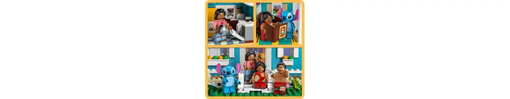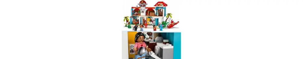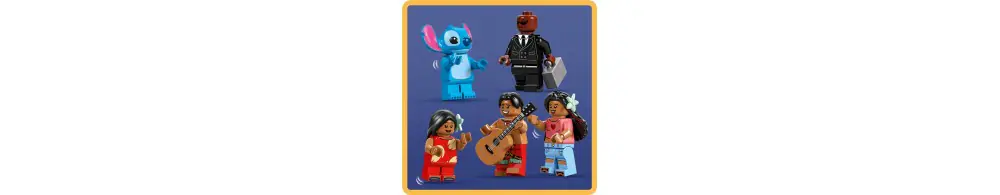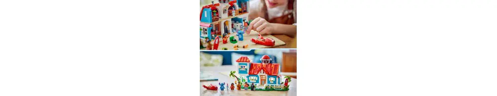 Niesamowite przygody czekają na dziewięcioletnich i starszych fanów podczas zabawy zestawem LEGO® ǀ Disney Domek na plaży Lilo i Stitcha (43268). Model ma dwa piętra i kryje w sobie mnóstwo szczegółów z filmów oraz niespodzianek, w tym dwie deski surfingowe, lalkę Lilo Strupkę, gramofon, słoik, zbudowany z klocków statek kosmiczny, a także pięć minifigurek postaci LEGO ǀ Disney — Davida, Lilo, pana Bąbla, Nani i Stitcha, które gwarantują niekończącą się zabawę.