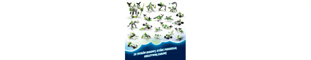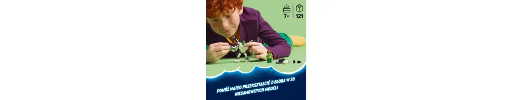 Głównym modelem jest robot Z-Blob, którego mali konstruktorzy mogą zbudować, zanim odkryją 19 innych niezwykłych opcji. Wśród robotów i mechów do przebudowywania znajdują się helikopter, samochód wyścigowy, robot, turboodrzutowiec i skorpion. Niesamowite detale obejmują ruchome nogi, ręce, stopy i skrzydła, obrotowe śmigła i miotacz klocków. Zestaw zawiera również minifigurkę Mateo, która ożywia akcję i pobudza wyobraźnię.