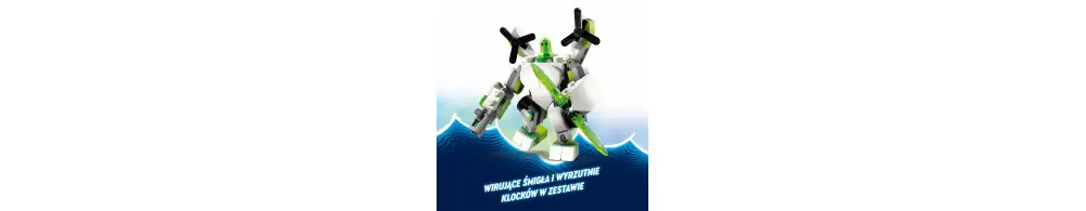 • Wśród detali znajdują się obrotowe śmigła i miotacz klocków