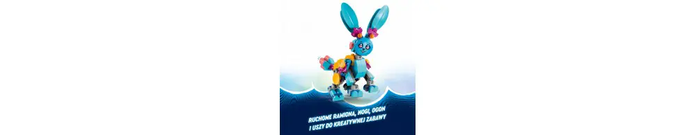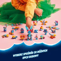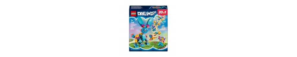 Kreatywność dzieci poszybuje do gwiazd, gdy zbudują uroczą figurkę króliczka Bunchu z ruchomymi nogami, rękami, stopami, ogonem i uszami, a następnie przebudują ją na 19 niesamowitych zwierzątek. Opcje budowania obejmują lwa, żółwia, jelenia, motyla, ważkę i nie tylko! Minifigurka Izzie, która ma nowy strój i pluszaka, ożywia zestaw i zachęca do kreatywnej zabawy w odgrywanie ról oraz wymyślania nowych przygód dla bohaterki LEGO DREAMZzz i jej króliczego pomocnika.