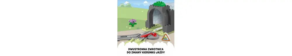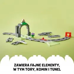 Ta kreatywna zabawka zawiera model tunelu i 10 elementów torów, w tym komin i dwustronną zwrotnicę, dzięki której dzieci mogą zmieniać kierunek jazdy pociągu. Klocek funkcyjny zapala światła w ciemnym tunelu podczas przejazdu interaktywnego pociągu z zestawów 10427 i 10428.