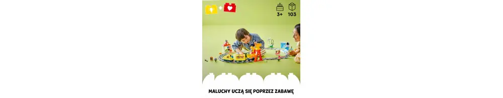 • Zestaw z pociągiem LEGO® DUPLO® po złożeniu w formie pętli ma 99 cm szerokości