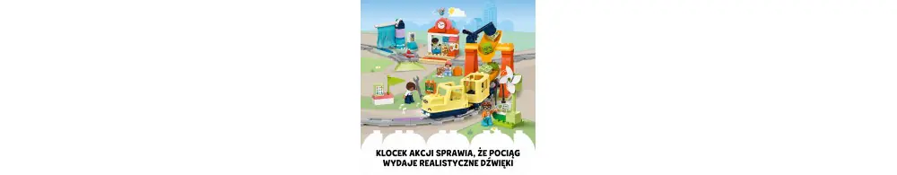 Dzięki zestawowi Duży interaktywny pociąg miejski (10428) pełnemu różnych cech i funkcji, które gwarantują wiele godzin zabawy i nauki, przedszkolaki w wieku od trzech lat wybiorą się w twórczą podróż. Zestaw obejmuje także cztery figurki.