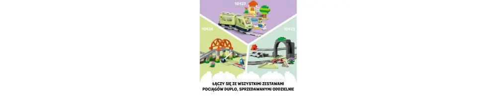 • Łączy się z innymi zestawami kolejowymi LEGO® DUPLO® i zawiera bezpłatną aplikację