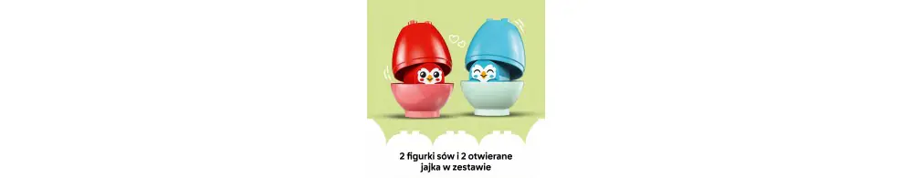 • Zestaw zawiera dwie figurki sów, dwa jajka i domek na drzewie