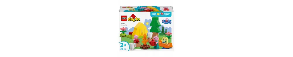 Dzięki zestawowi LEGO® DUPLO® Świnka Peppa Wyprawa na biwak (10452) maluchy wyruszą na wspaniałą przygodę. Poprzez kreatywną zabawę dzieci odkrywają, co czują podczas nowych doświadczeń, bawiąc się w biwak w towarzystwie Świnki Peppy i Taty Świnki. Wraz z postaciami mają okazję wziąć udział w spływie kajakiem po rzece.