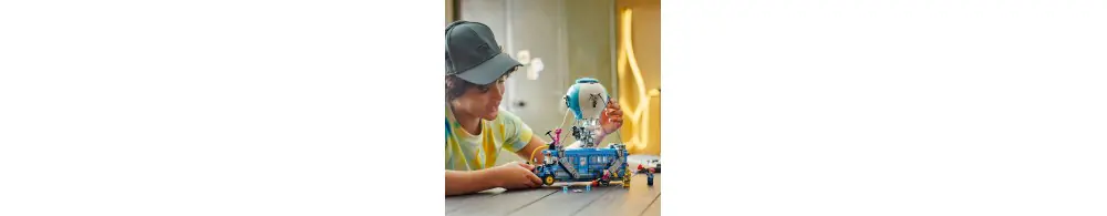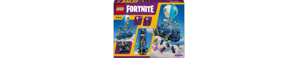 Fani przeniosą się do ekscytującego świata LEGO Fortnite, budując busa z obracającymi się kołami i zdejmowanym dachem oraz rozpoznawalnym balonem na ogrzane powietrze. Ale to dopiero początek! Gdy autobus będzie już gotowy, z radością odkryją kultowe akcesoria, takie jak sok Siorb, przysysak, kilof i Kleposok, a także dziewięć minifigurek w kultowych strojach z gry Fortnite. Minifigurki można umieścić w busie i bawić się w odgrywanie ról.