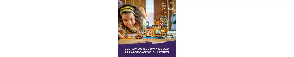 Ten zestaw LEGO Friends jest pełen akcesoriów umożliwiających opowiadanie historii. W obozie kempingowym jest sprzęt do wypożyczenia, lodówka z przekąskami, prysznic, apteczka, trofea i wiele innych elementów. Po dniu pełnym wrażeń przyjaciele mogą zrelaksować się w strefie spotkań lub zagrać w tenisa stołowego.