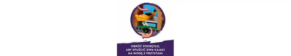 Dzieci mogą odgrywać różne historie, zakładając postaciom kaski, kamizelki ratunkowe i wiosła, a następnie obracając pokrętło, aby spuścić na wodę dwa kajaki z przystani. Zestaw zawiera też funkcję, która pozwala dzieciom puszczać kaczki z pomostu.