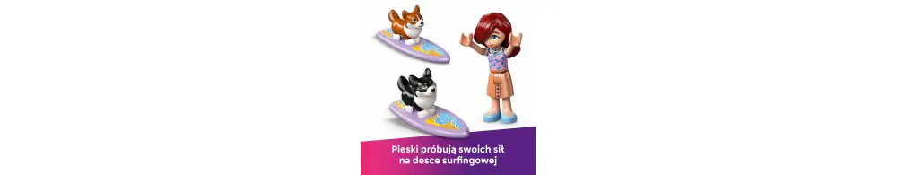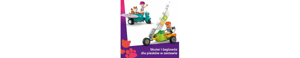 Zainspiruj dzieci do wymyślania własnych przygód na plaży dzięki zestawowi LEGO® Friends Przygoda z surfującymi psami i skuterem (42641). Ta zabawka do odgrywania ról zawiera miniaturową deskę surfingową, skuter, żaglowóz i leżaki. Zestaw zawiera również dwie minilaleczki LEGO Friends i dwie figurki piesków corgi. Ten zestaw to świetny pomysł na prezent dla sześcioletnich i starszych dzieci, które uwielbiają kreatywną zabawę.