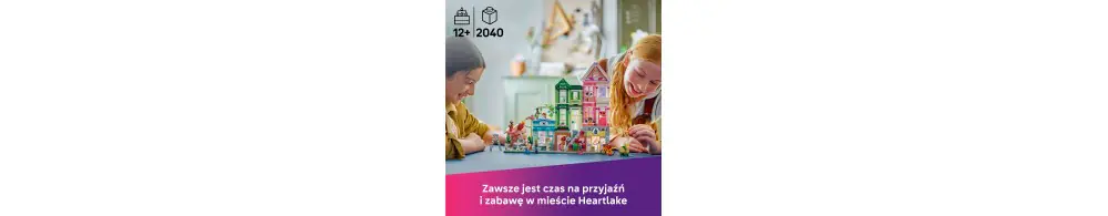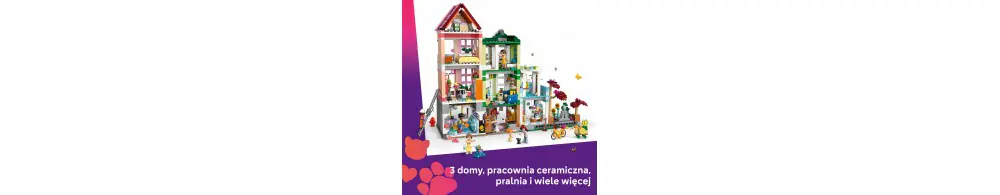Poczuj przyjazną atmosferę lokalnej społeczności dzięki zestawowi LEGO® Friends Mieszkania i sklepy w mieście Heartlake (42670). Ten zestaw to świetny prezent dla dzieci w wieku od 12 lat. Zawiera trzy kolorowe domy LEGO, piekarnię, pracownię ceramiczną, pralnię i wiele więcej. Całość uzupełnia mnóstwo detali i akcesoriów, a także dziewięć postaci, w tym siedem minilaleczek i trzy figurki kotów.