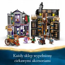 Otwórz Sklepy Ollivandera™ i Madame Malkin (76439), aby przeżyć magiczne przygody dzięki temu zestawowi konstrukcyjnemu LEGO® Harry Potter™ Ulica Pokątna™ dla dzieci. To świetny prezent dla dzieci i fanów Harry’ego Pottera w wieku od ośmiu lat. Zawiera bardzo szczegółowe modele przedstawiające dwa kultowe sklepy na ulicy Pokątnej pełne ciekawych akcesoriów. Sklep z różdżkami Ollivandera ma na półkach wyjmowane pudełko z różdżką Harry'ego Pottera, stojaki na różdżki, drabinę i aż 26 innych różdżek. W sklepie Madame Malkin znajdziesz z kolei manekiny, kapelusze i szaty.