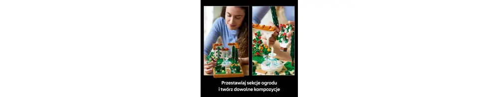 Odpręż się dzięki szerokiej ofercie zestawów LEGO, zaprojektowanych specjalnie dla dorosłych (sprzedawane osobno). Aplikacja LEGO Builder zawiera cyfrową wersję instrukcji budowania w 3D do tego zestawu z ogrodem LEGO.