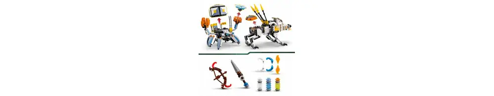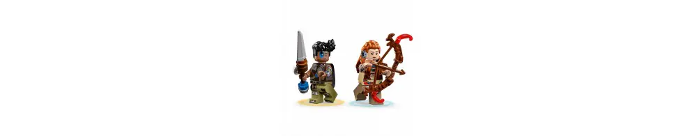 Ten zestaw LEGO jest oparty na grze wideo LEGO Horizon Adventures i zawiera dwie minifigurki: Aloy i jej lojalnego pomocnika Varla. Aloy jest uzbrojona w łuk, a Varl we włócznię. Każda broń ma ulepszenia, które można dodać, aby umożliwić atak ogniem, chłodem lub wstrząsem — tak jak w grze wideo. W zestawie znajdują się również dwa roboty do zbudowania. Krabołaz ma ruchome nogi i ramiona, otwierane szczypce oraz odłączany pojemnik i tarczę energetyczną. W pełni ruchomy piłoząb ma otwierane szczęki, obrotowy tułów oraz ruchomą szyję, głowę i nogi. Wysokie trzciny, ognisko, skrzynia ze skarbami i inne akcesoria inspirują do twórczej zabawy. Warto także zapoznać się z aplikacją LEGO Builder, która zapewnia cyfrową rozrywkę podczas budowania.