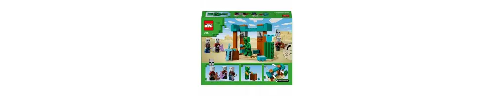 Na pustynnym posterunku z gry Minecraft dzieci mogą wcielić się w rolę kaktusowego rycerza z diamentową zbroją, tarczą i mieczem. Gdy przybywa trzech złosadników, by ukraść skarb, dzieci muszą bronić posterunku. Zestaw zawiera pociski, które dzieci mogą wystrzelić palcami, różne rodzaje broni i beczkę ze skarbem. Dodatkową cyfrową zabawę zapewnia aplikacja LEGO Builder, która pozwala dzieciom powiększać i obracać modele w 3D na urządzeniu.