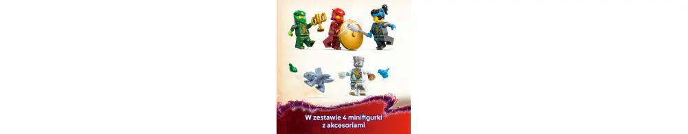 • Cztery minifigurki: Zane, Kai, Lloyd i Nya oraz Maleństwo Riyu