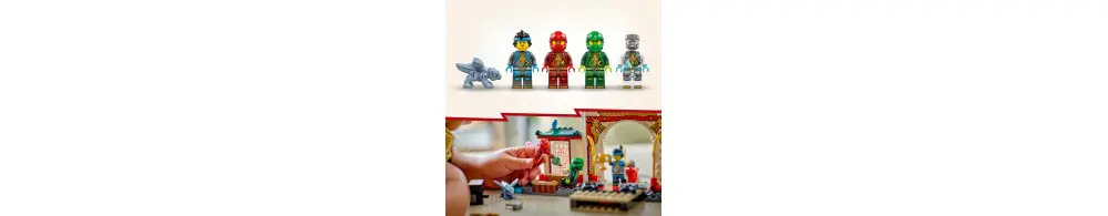 Zaskocz czterolatków i starsze dzieci zestawem LEGO® NINJAGO® Świątynia Spinjitzu ninja (71831). Ten zestaw ze smokiem umożliwia odtwarzanie przygód z trzeciego sezonu serialu telewizyjnego NINJAGO® Powstanie Smoków. Idealnie sprawdzi się do odgrywania ról na scenie turniejowej NINJAGO, w ogrodzie, herbaciarni i terenie szkoleniowym.