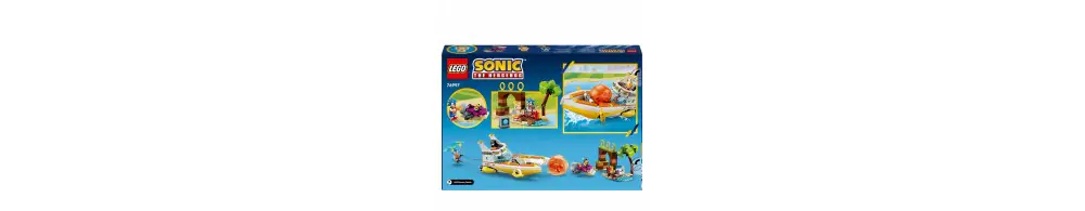 Zaskocz ośmioletnich i starszych miłośników przygód i fanów gier wideo zestawem z interaktywnymi funkcjami Tails i przygoda na łodzi (76997). Ten kolekcjonerski zestaw LEGO® Sonic the Hedgehog™ zawiera łódkę z wbudowaną wyrzutnią kul szybkości z przodu, maszynę do karaoke i parkiet taneczny, a także łączniki do parasailingu z tyłu. Cztery postacie, model wyspy z trzema Pierścieniami, łuk, plaża, leżak i inne akcesoria poszerzają możliwości zabawy.