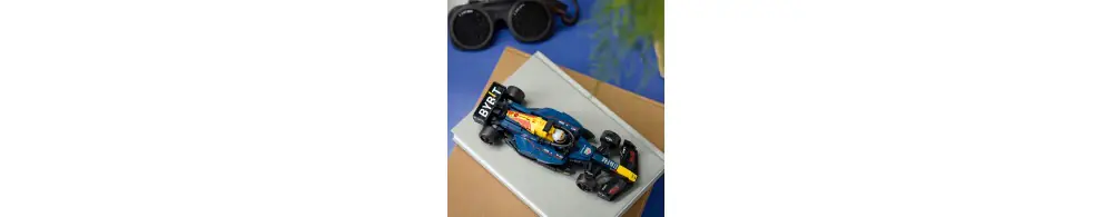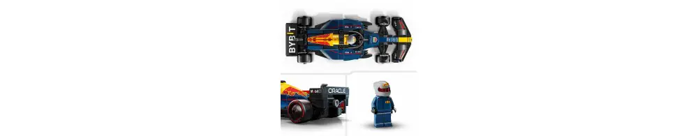 Model samochodu F1 ma kokpit otwierany przez podniesienie pałąka systemu halo, tylne skrzydło, zawieszenie typu wishbone, naklejki sponsorów i szersze tylne opony z napisem „Pirelli”. Bolid F1 zawiera także minifigurkę kierowcy w kombinezonie zespołu Red Bull i kasku, którego można umieścić w kokpicie i odgrywać wyścigi. Po zakończonej zabawie model będzie się świetnie prezentował na półce.