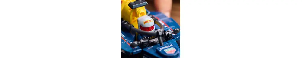 • Zawiera minifigurkę kierowcy F1® zespołu Red Bull do umieszczenia w kokpicie