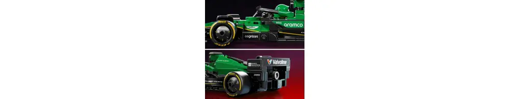 Model samochodu F1 Aston Martin Aramco ma kokpit otwierany przez podniesienie pałąka systemu halo, tylne skrzydło, zawieszenie typu wishbone, naklejki sponsorów i szersze tylne opony z napisem „Pirelli”. Bolid zawiera także minifigurkę kierowcy w kombinezonie Aston Martin Aramco i kasku, którego można umieścić w kokpicie i odgrywać wyścigi.