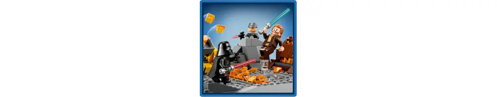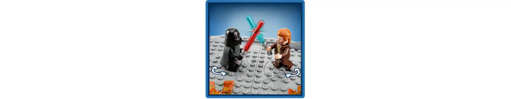 Przeżyj zaciekłą walkę między Obi-Wanem Kenobim a Darthem Vaderem dzięki zestawowi LEGO® Star Wars™ (75334). Znajdują się w nim dwie obrotowe platformy bitewne, wysuwana funkcja ognia rozdzielającego pole bitwy i wagonik górniczy, który można przewracać. Są także cztery minifigurki: Obi-Wan Kenobi i Darth Vader z mieczami świetlnymi, Tala Durtith i droid NED-B — dzięki którym można odgrywać scenki z serialu „Gwiezdne Wojny: Obi-Wan Kenobi.