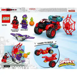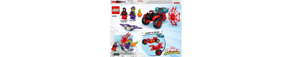 Podaruj odrobinę zabawy młodym pajęczym bohaterom dzięki temu ciekawemu zestawowi LEGO® Marvel z pojazdem Spider-Mana. Zestaw Miles Morales: Technotrójkołowiec Spider-Mana (10781) doskonale sprawdzi się jako prezent bez okazji i zachęci dzieci do pomysłowej zabawy. Fani Marvela mogą odgrywać emocjonujące scenki pościgów, podczas których Miles Morales przypiera Zielonego Goblina do muru i strąca go z maszyny latającej wystrzeloną pajęczyną. Proste modele dla fanów Spider-Mana Zestawy LEGO 4+ zawierają zmyślne elementy, które zapewniają chłopcom i dziewczynkom świetną zabawę. Przydatny klocek startowy pełni funkcję solidnej podstawki konstrukcyjnej i pozwala dzieciom szybko rozpocząć zabawę z udziałem superbohaterów. Najlepsza zabawa dla całej rodziny Dzięki zestawom 4+ dorośli mogą budować razem z dziećmi. Osoby, które nigdy wcześniej nie miały styczności z klockami LEGO, nie muszą się niczym przejmować — ten zestaw z superbohaterami zawiera ułatwiające budowanie ilustrowane instrukcje, więc nawet dzieci, które dopiero uczą się czytać, poradzą sobie ze złożeniem modelu.