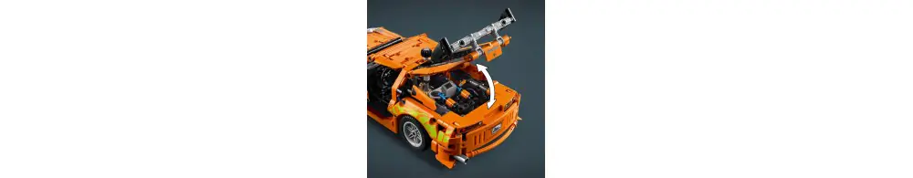 Dziewięciolatki i starsze dzieci mogą teraz wziąć udział w superszybkiej akcji rodem z filmu Szybcy i wściekli. Zbuduj samochód LEGO® Technic Fast and Furious Toyota Supra MK4 (42204) i rozkręć zabawę, odkrywając realistyczne detale. Ta wersja modelu kultowego samochodu ma sześciocylindrowy silnik, układ kierowniczy, otwieraną maskę i zdejmowany dach typu targa. W bagażniku znajdują się nawet dwie butle z nitro — takie same jak te z pierwszego filmu Szybcy i wściekli.